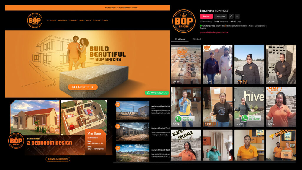 The product was simple – how do you market a brick, right? We turned to what you can build with bricks – what a customer could do with a brick was aspirational. So our approach was to set out how Bop Bricks can become the brick of choice for people in the townships areas of Gauteng who want to level up their homes by building on or adding walls or paving, or… build a totally new home for their family.